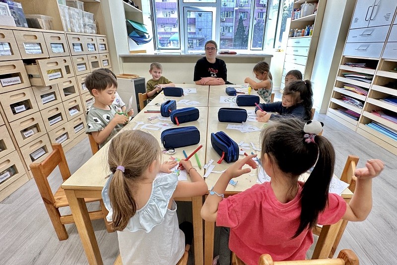 Zusätzlich gibt es gemeinschaftlich genutzte Räume wie z. B. Bewegungsraum, Musikzimmer, Atelier und Kinderbibliothek. Für den Sportunterricht nutzen wir wöchentlich die Turnhalle bzw. den Fitnessraum der DSP sowie das Bälle-Bad und den Spielplatz des Tayuan DRC.